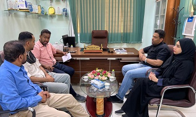 التقى الدكتور محمد أحمد بن نويصر، المدير العام لمكتب وزارة الصحة العامة والسكان بساحل حضرموت، بمكتبه بالمكلا، الأستاذ عماد صلاح المشجري، المدير العام لمكتب وزارة الصناعة والتجارة، بحضور نائبي المدير العام الأستاذ علي عمر باجوه لشؤون التخطيط والتنمية الصحية، والدكتورة أميرة زين بافضل لشؤون الخدمات الطبية والعلاجية بمكتب وزارة الصحة العامة والسكان بساحل حضرموت.